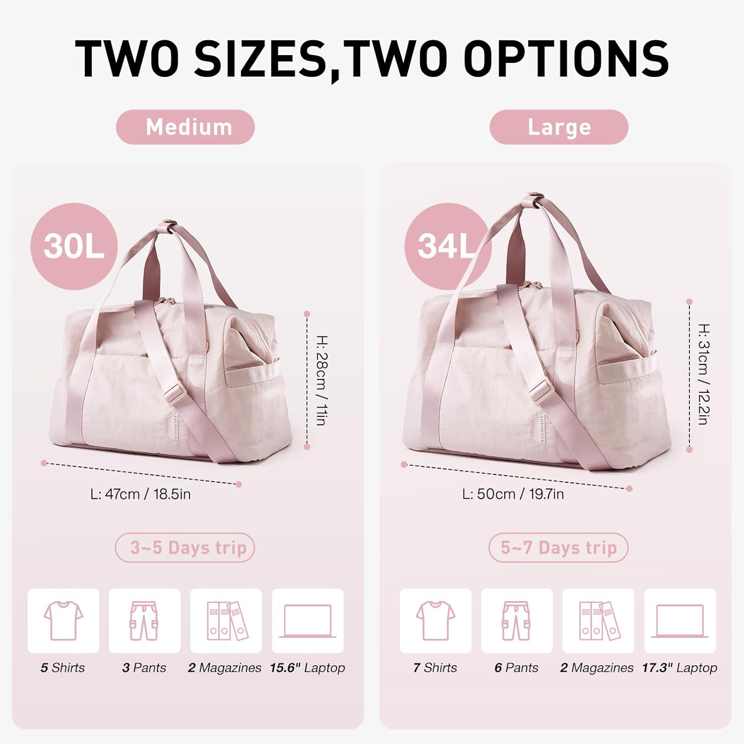 Gym Bag for Women, Carry on Weekender Overnight Travel Duffel Bags with Trolley Sleeve, Personal Item Travel Bag Tote Workout Dance Bag(Pink,Medium)